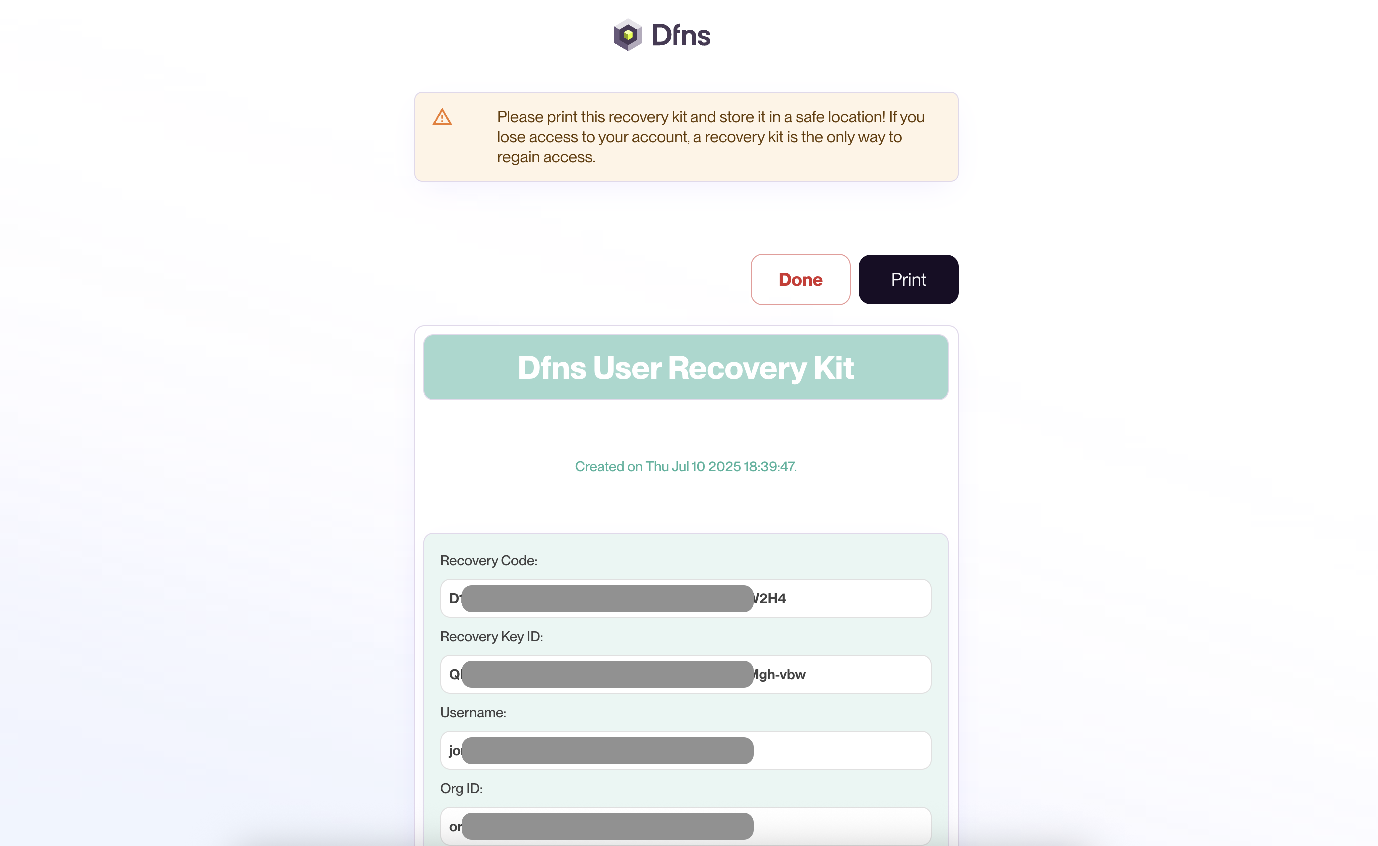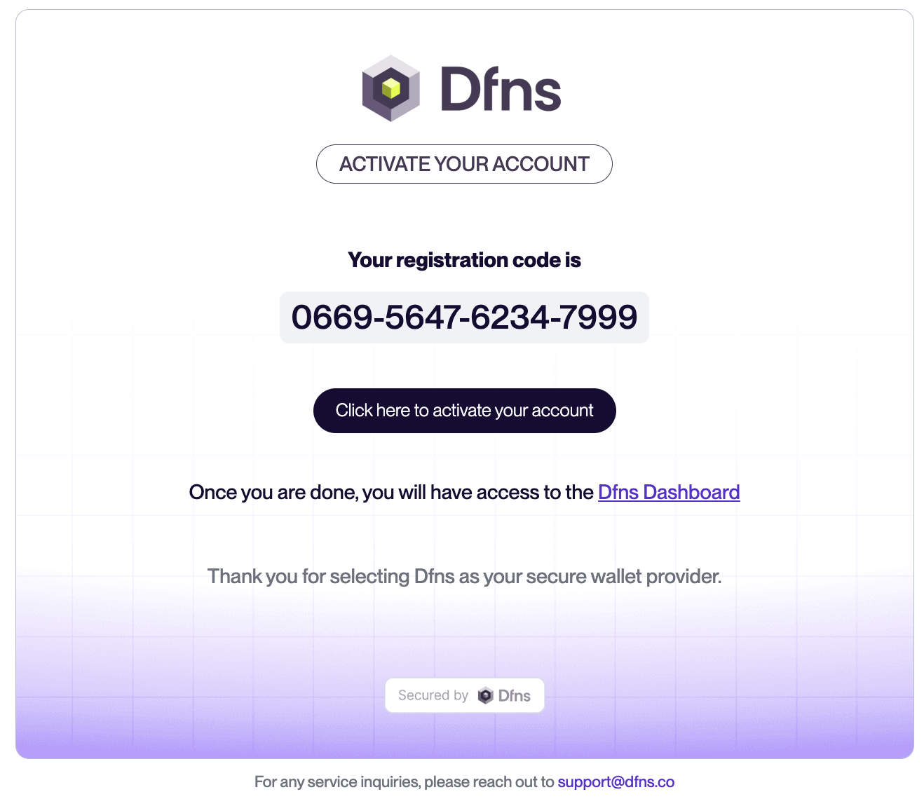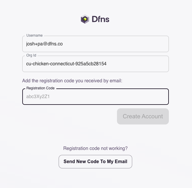 The new user will receive an email with the same registration flow as you did. Make sure he follows the instructions to register his credentials to be able to use Dfns.