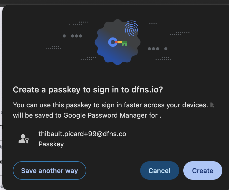 You will be asked to register your 🔑 passkey. Your browser should offer the available options on your device. If there is none, then you can consider buying a WebAuthn-compatible device (Yubikeys are a common example) or install a password manager to take care of it for you.